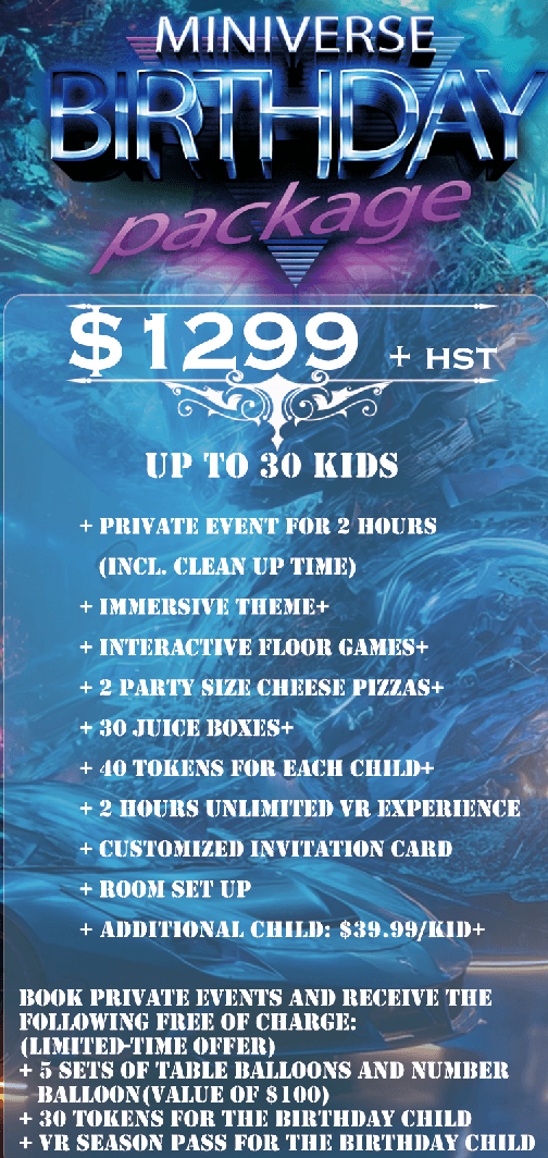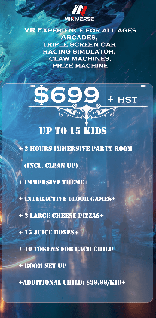 -Minute ALL U CAN PLAY family bundle starting $49.99 Enjoy UNLIMITED VR & ARCADE for your whole family!!!